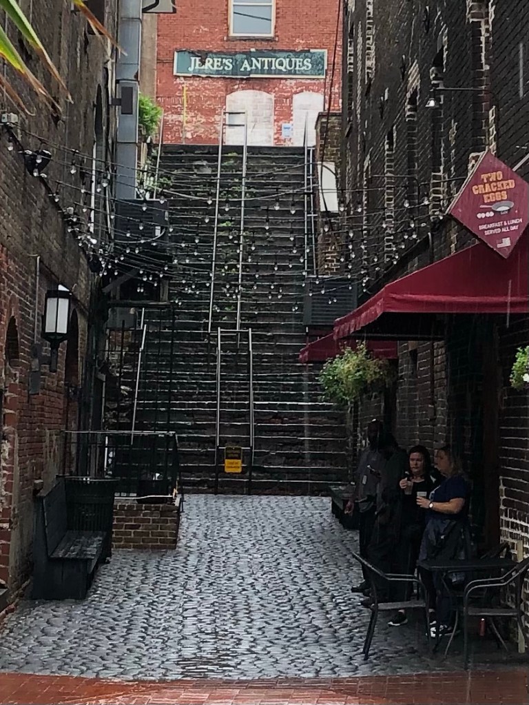 These cobblestone stairs on River Street in Savannah, Georgia are called “Stone Stairs of Death” They are most treacherous after a good hard rain. The eerie steps are a part of the charm in Savannah, Georgia; which is the oldest city in Georgia and was established in 1733.
