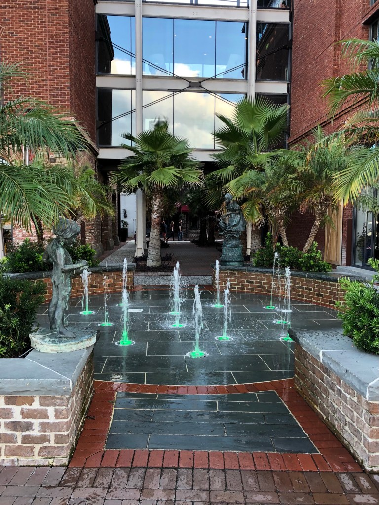 Beautiful new area down on River Street in Savannah, Georgia is called Plant Riverside District. It has incredible restaurants, an upbeat atmosphere, dancing fountains, live music, entertainers and street performers that keep you wanting more! As you are walking around and listening to music you have huge cargo ships coming in to the seaport.